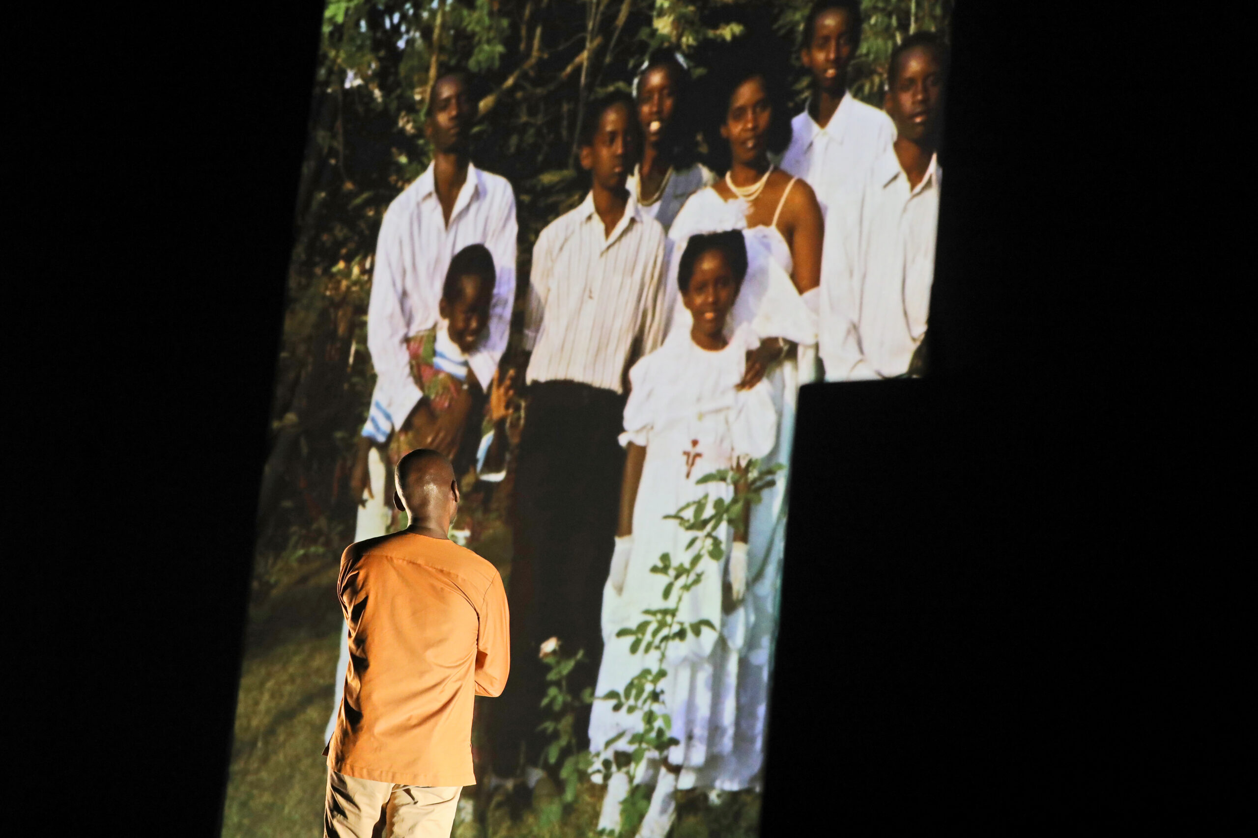 Trente ans après le traumatisme du génocide des Tutsis, la figure majeure du théâtre rwandais Dorcy Rugamba ouvre un espace de communion avec les absent·e·s. Accompagné du musicien sénégalais Majnun, ils mettent en place une singulière cérémonie pour sa famille disparue et pour les milliers de Tutsis fauchés par une indicible haine en 1994. Dans une lecture-spectacle délicate et bouleversante, tirée de son livre, il conjugue récits personnels et chants pour tracer un nouveau chemin vers celles et ceux qui ne sont plus.